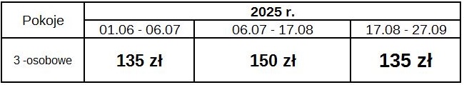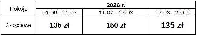 Na terenie obiektu znajdują się dwa pokoje 3-osobowe.